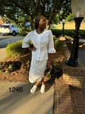 2 Piece Peplum Suit: - 3/4 sleeve - Princess seam peplum jacket - Shirring detail at peplum sleeve cuff - Side entry skirt - Back elastic - Length = 25.0" Peplum Uniform